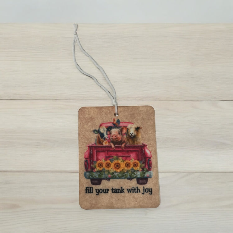 Handcrafted air fresheners are available in both pre-scented and unscented options.